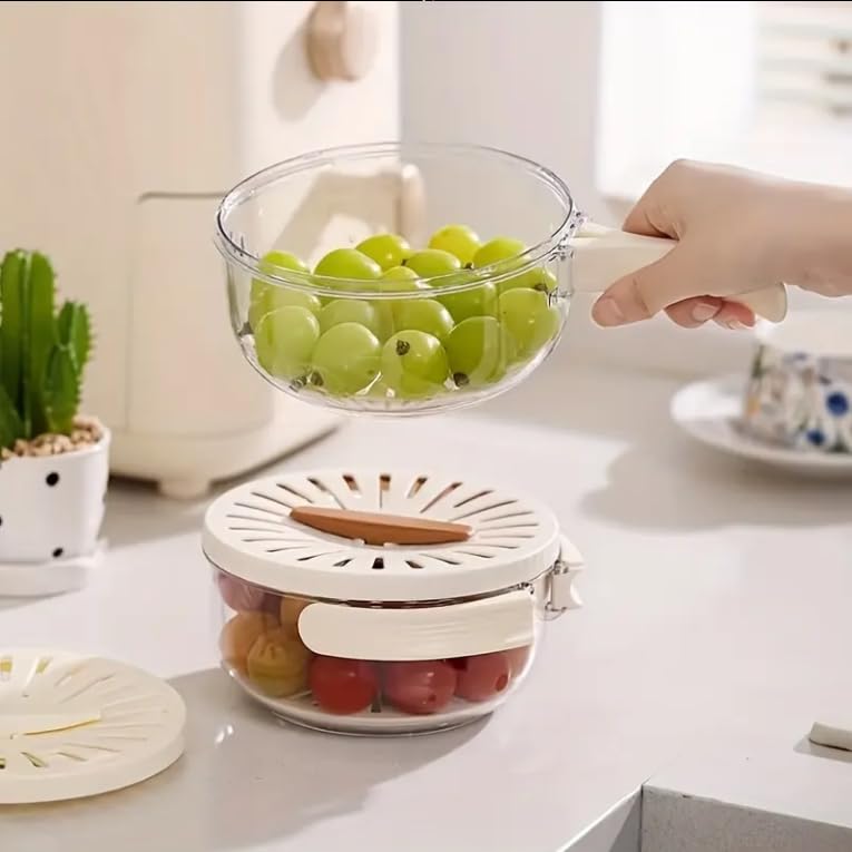 • 🥝 Fruit Draining Basket with Lid – Easily rinse and store fruits and veggies with this multipurpose container. Ideal for berries, grapes, cherry tomatoes, and leafy greens.