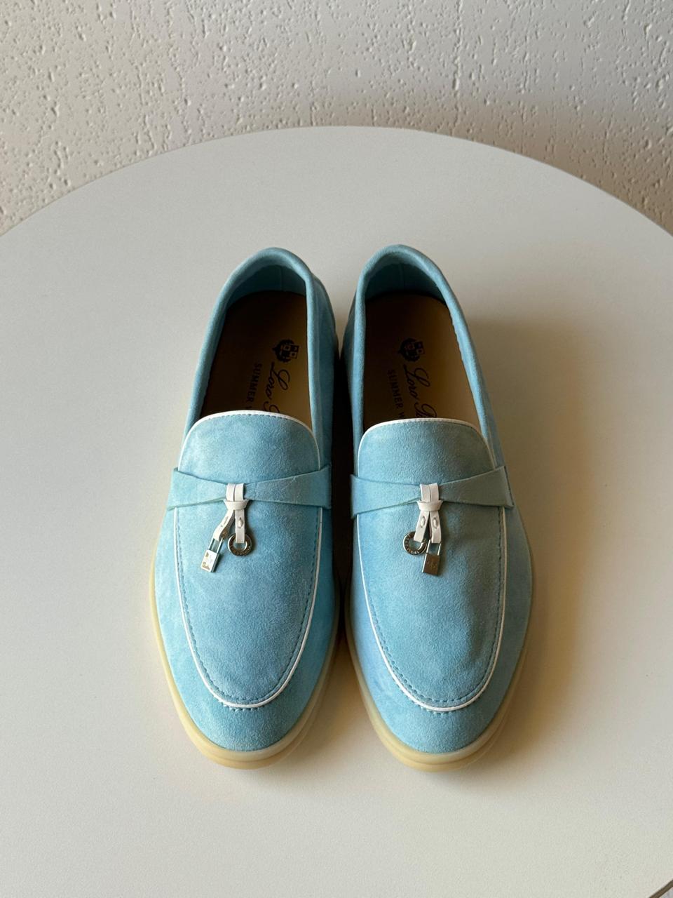 Designed for modern sophistication, these Summer Charms Walk loafers showcase Loro Piana’s commitment to exceptional materials and timeless design. The supple suede upper delivers a velvety texture, while the signature mini gold charm detail adds a subtle statement of prestige.