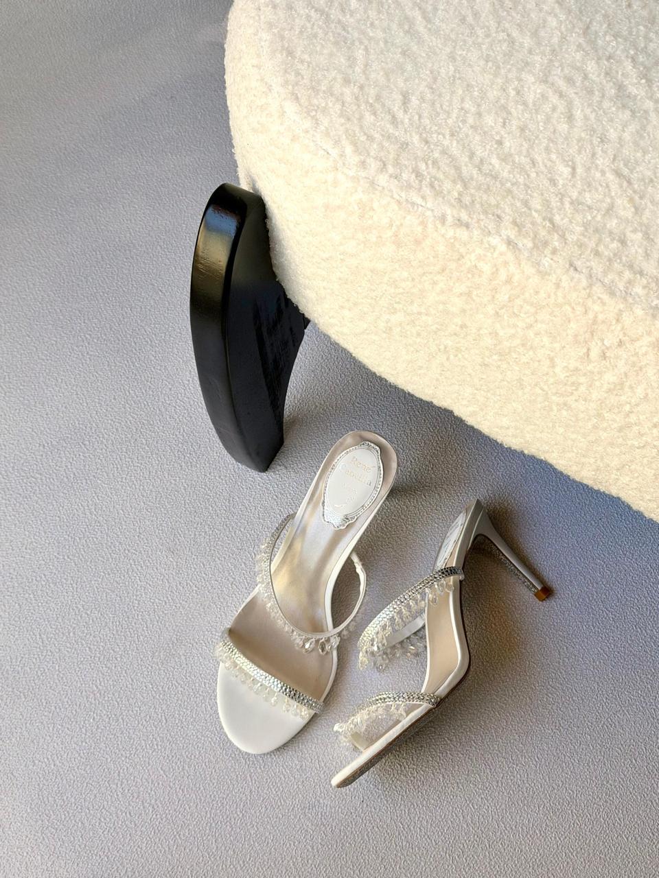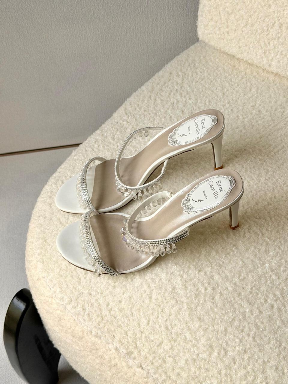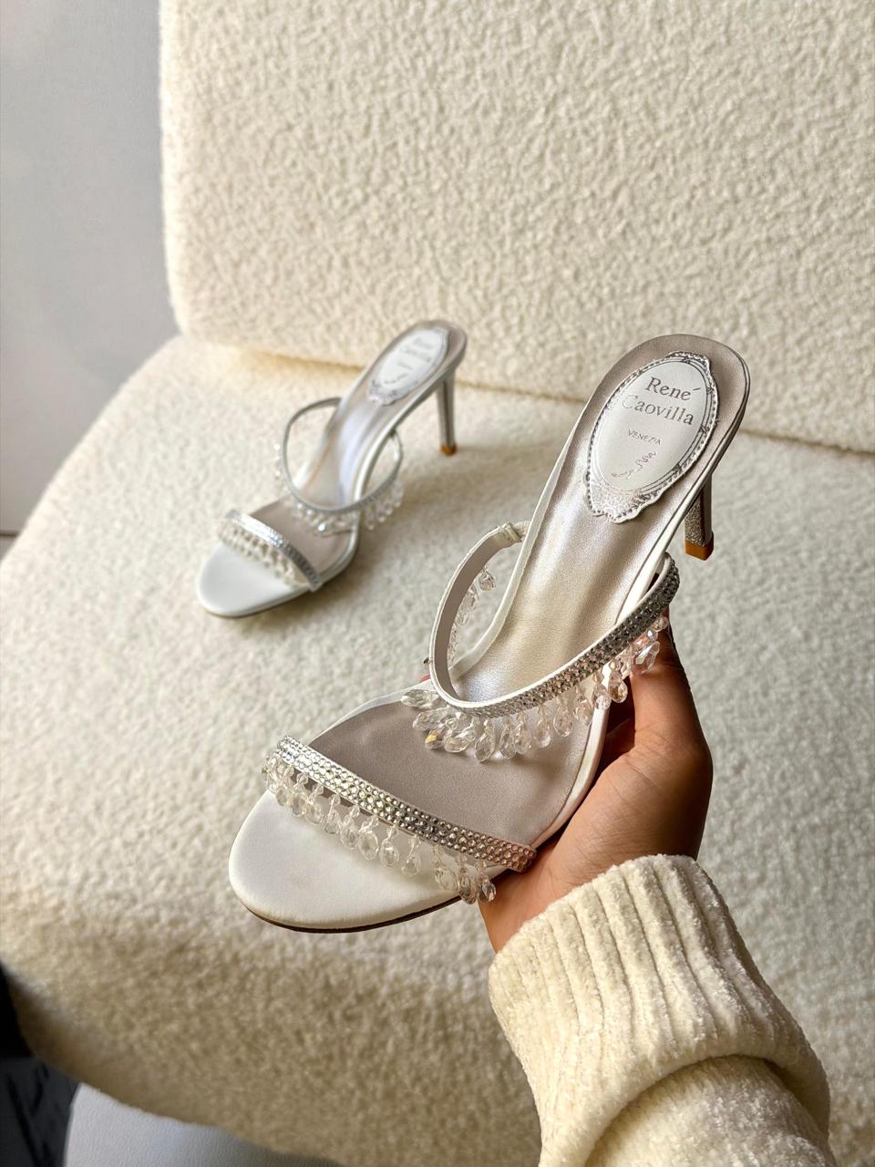 Inspired by the iconic craftsmanship of René Caovilla, these heels showcase delicate beaded detailing, sleek feminine curves, and timeless evening sophistication designed for modern fashion lovers.